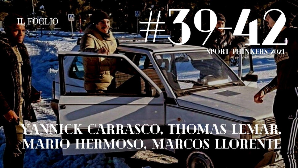 39-42) Yannick Carrasco, Thomas Lemar, Mario Hermoso, Marcos Llorente, calciatori dell’Atletico Madrid, Belgio, Francia, Spagna. Per essersi uniti al culto della Panda 4x4 utilizzando il mitico mezzo nel tragitto casa-allenamento (o, nel caso di Llorente, filmando da un’altra vettura l’impresa per i posteri), sfidando con successo la tempesta di neve abbattutasi lo scorso gennaio su Madrid.