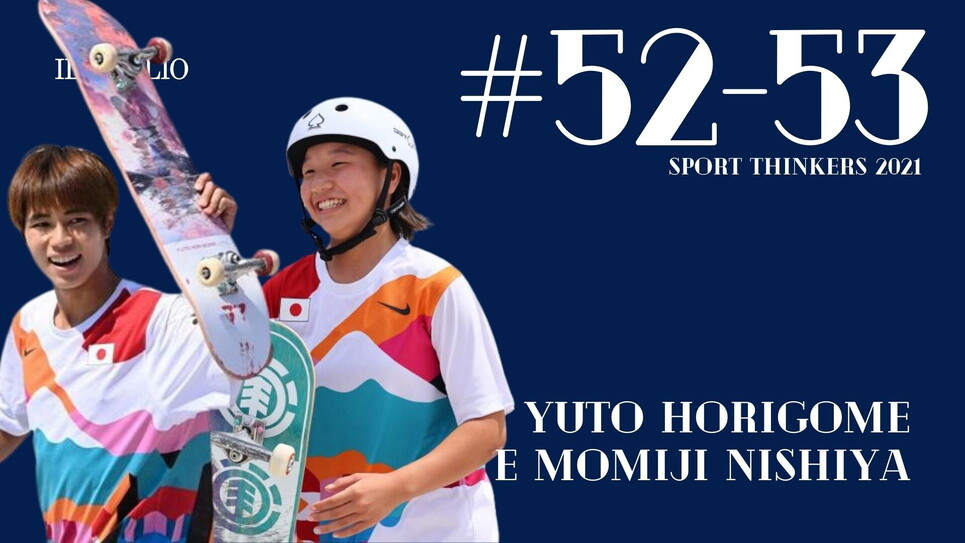 52-53) Yuto Horigome e Momiji Nishiya, skateboarder, Giappone. Perché, dopo gli eclatanti trionfi olimpici in questa nuova disciplina, per vedere le prossime fioriture primaverili degli alberi di ciliegio nei parchi i giapponesi si sposteranno… con lo skateboard!