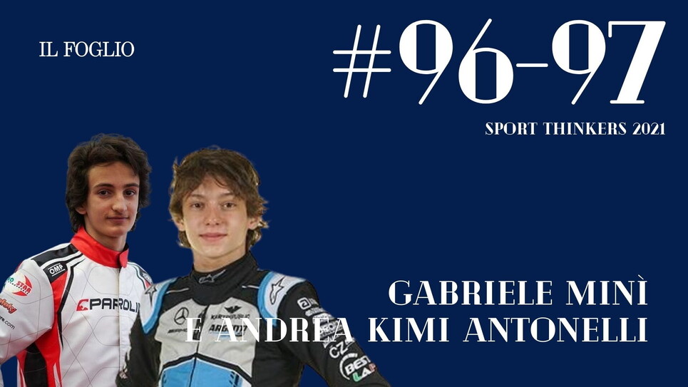 96-97) Gabriele Minì e Andrea Kimi Antonelli, piloti, Italia. Perché, nell’anno del licenziamento di Antonio Giovinazzi, l’Italia si trova senza pilota in Formula 1: niente paura, segnatevi questi due nomi, sono loro il futuro.