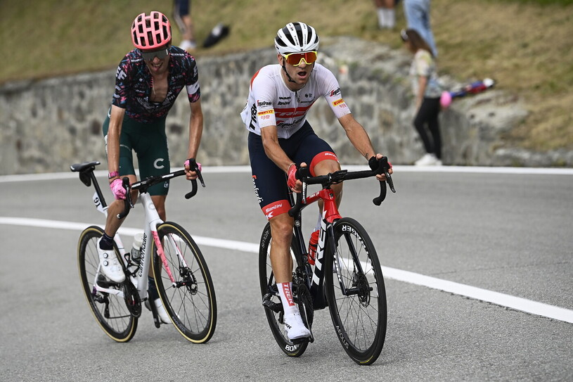 Risalendo la Val d’Aosta, Giulio Ciccone ha provato più volte a far evadere il gruppo giusto, non ce l’ha fatta. Ha rincorso quello che se ne era andato via per conto proprio. Salendo verso Pila è rimasto tranquillo, ha lasciato a Koen Bowman, Martijn Tusveld e Mathieu van der Poel cercare l’improbabile. Verso Verrogne ha aumentato la velocità ascensionale e ridotto le speranze di chi continuava a sperare in una vittoria. Nell’ultima salita, quella che portava a Cogne, ha deciso che la solitudine era la dimensione adeguata, quella preferibile, l’unica che poteva davvero redimere le colpe che sentiva addosso. Gli erano rimasti addosso Santiago Bruitrago e Hugh Carthy. Poi solo l’inglese, che saliva a suo modo, legnoso e ansimante, così diverso dalla sua levità d’animo di chi accetta ciò che la bici gli riserva ed è comunque contento, perché non si può essere infelici mentre si pedala. Carthy faceva una pedalata ogni due di Ciccone. Spingeva il solito rapporto che fa venire il mal di gambe anche da distesi sul divano. A un certo punto pure le sue, di gambe, si sono ribellate.