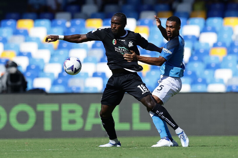 Mica tutti però, perché qualcosa di antico ancora sopravvive, tipo a La Spezia, tipo M'Bala Nzola. L'attaccante angolano nato a Troyes, Francia, è un errore storico, una sopravvivenza di un'Italia che non c'è più, di un calcio che non c'è più. Eppure è ancora presente, uno spazio occupato in area di rigore. Talmente occupato da diventare se non invisibile, parecchio trascurato. Eppure c'è, è lì che sgomita e lotta per resistere, per continuare a esistere, in un corpo alto ma non troppo, un metro e ottantacinque ormai è altezza comune, mobile ma non troppo, veloce ma non troppo.