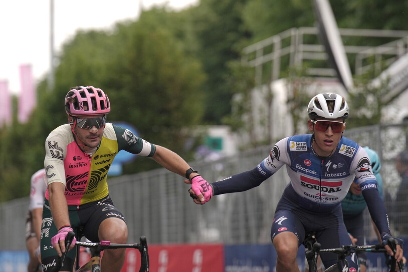 Alberto Bettiol ha provato a lungo a convincere i più a collaborare. Inutilmente. Dopo l’arrivo ha stretto la mano a Ilan van Wilder, uno dei pochi a non risparmiarsi troppo.