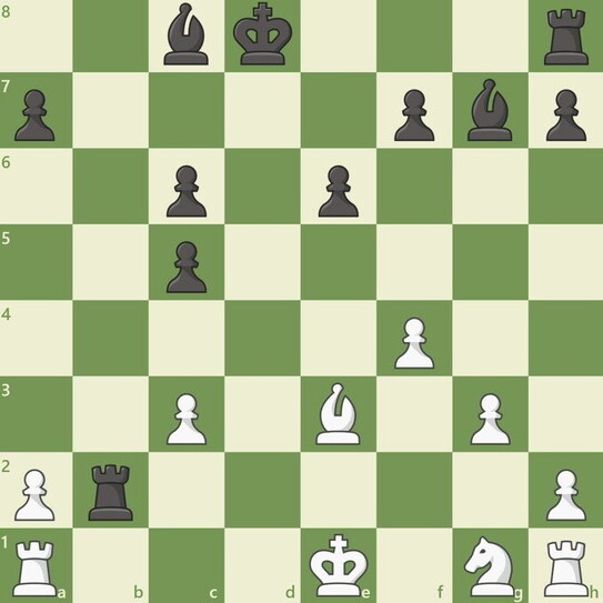 La sequenza è questa: 1 e4 c5 2 g3 Nc6 3 Bg2 Nf6 4 Nc3 e6 5 f4 d5 6 e5 d4 7 exf6 dxc3 8 fxg7 cxd2+ 9 Qxd2 Bxg7 10 Bxc6+ bxc6 11 Qxd8+ Kxd8 12 c3 Rb8 13 Be3 Rxb2??