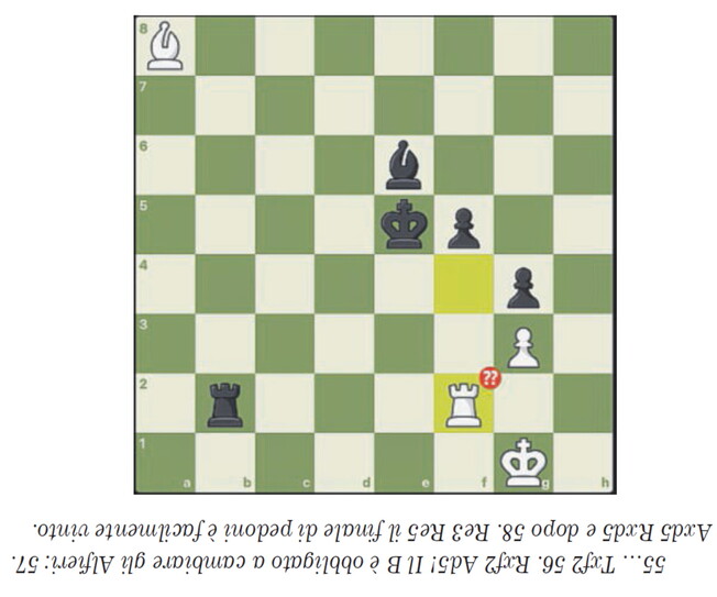 Con 55. Tf2, Ding Liren ha commesso, probabilmente, il più grave errore in tutta la storia dei campionati mondiali: riesci a vedere il seguito vincente del Nero?