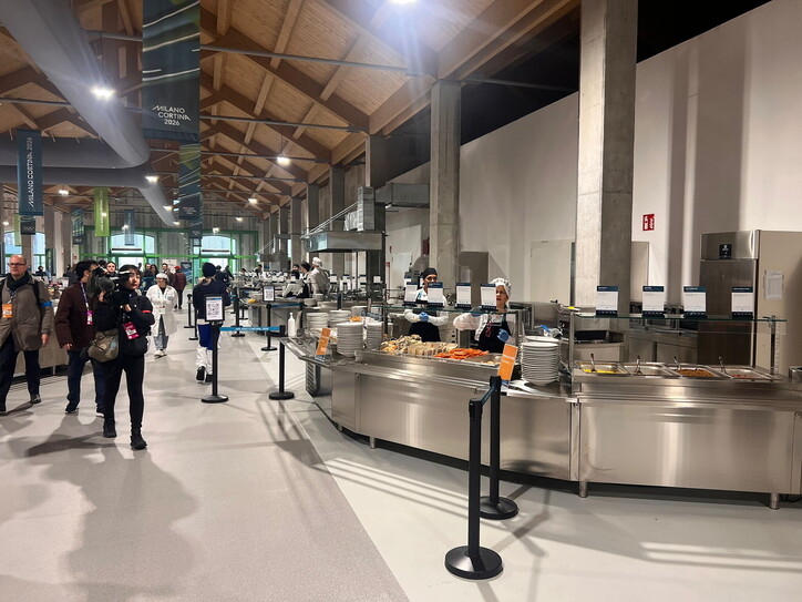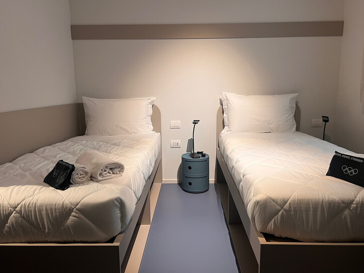 A Milano alloggia l’Italia del ghiaccio. Le due squadre di hockey e le atlete e gli atleti del pattinaggio artistico e di velocità. In totale ci saranno 77 persone, tra atleti, dirigenti e personale medico che al sesto piano ha una struttura tutta sua con medici e fisioterapisti. Il villaggio arriverà ad ospitare fino a 3500 persone e tutti aspettano le stelle dell’hockey ghiaccio, i miliardari di questi Giochi, gente che di solito gioca nella lega professionistica statunitense. Se le stelle Nba si guardano bene dal vivere nel Villaggio ai Giochi Estivi, quelle dell’hockey invece verranno qui a godersi l’Olimpiade in camerette singole o a due letti che non sono il massimo dell’allegria e fanno venire il magone a pensare che poi diventeranno uno studentato. Però sono pulitissime e non manca niente, magari con un poster alle pareti tutto cambierebbe. Certo il Villaggio è “carbon neutral”, c’è il recupero dell’acqua piovana, gli immancabili pannelli solari, serre e orti. Molto legno, poco metallo.