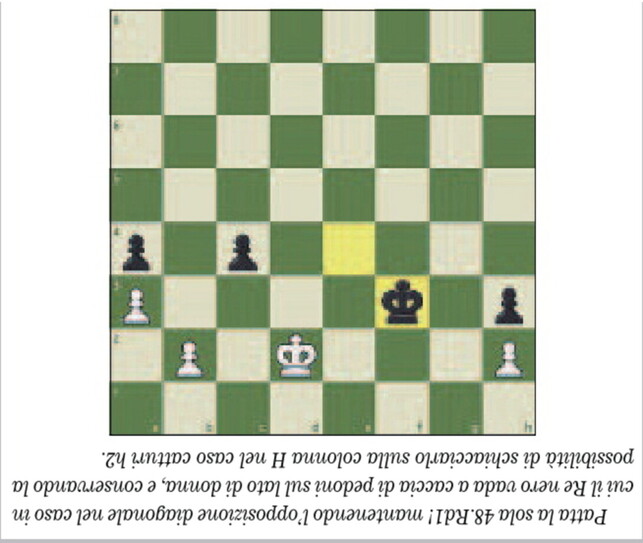L’importanza della conoscenza dei finali. Il Bianco ha frenato tenacemente per tutta la partita l’estro di Caruana, ma un solo sbaglio può vanificare ogni sforzo. Una sola mossa consente di pattare, Sonis la vede in un baleno, tu riuscirai a essere all’altezza?