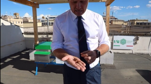 Lollo ci riprova La battaglia di Lollobrigida contro le vespe orientalis: "Ho rimesso l'alveare sul tetto del ministero" Dopo l'articolo del Foglio, il ministro dell'Agricoltura, in versione apicoltore, pubblica due video, uno dei quali insieme al presidente della Federazione degli apicoltori italiani (Fai), per spiegare come reagirà alla morte delle api che aveva ospitato sul tetto del suo dicastero Redazione 10 SET 2024