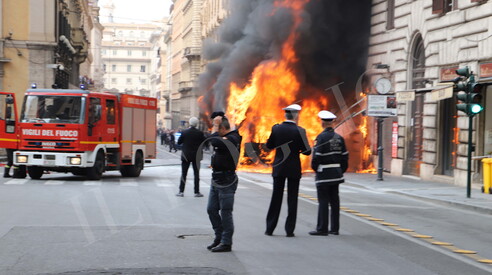 Bus in fiamme nel centro di Roma. L'intervento dei vigili del fuoco L'autobus dell'Atac ha preso fuoco in via del Tritone. La causa sarebbe un cortocircuito Redazione 08 MAG 2018