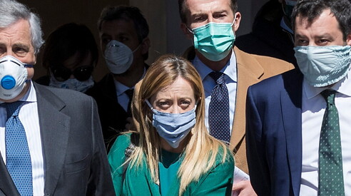 Congiunti d'Italia Non esistendo (più) una camera suddivisa per categorie professionali, i meloniani hanno improvvisato la Piazza dei Fasci e delle Corporazioni Guido Vitiello 30 APR 2020