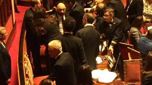 Fiducia sul Rosatellum, sinistra e M5s occupano i banchi del governo La protesta alla fine della seduta del Senato sulla riforma della legge elettorale 24 OTT 2017