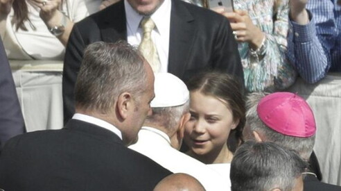 Greta saluta Papa Francesco prima che Roma la spaventi Dopo Strasburgo e la visita al parlamento europeo, la superambientalista ha incontrato il Pontefice in piazza San Pietro al termine dell'udienza generale 17 APR 2019