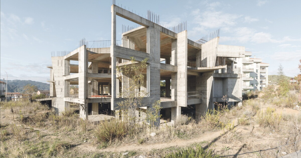 Attraversando in auto un paesaggio “che ricorda la Louisiana”, come cantava Nino Ferrer, succede nel meridione italiano, tra sterpaglie e palme decimate dal punteruolo rosso, di incappare in una forma architettonica inusuale e caratteristica, quella del non-finito. Case potenziali, villette ideali, magioni abbozzate, bicocche bloccate dalle leggi e dai finanzieri, dai sovrintendenti e dalle bancarotte, che le fanno assomigliare alla “casetta tanto carina, senza soffitto senza cucina” della canzonetta di Moraes. Ma il mondo italiano del non-finito si estende anche alle opere pubbliche, statali e municipali, spesso promesse in campagna elettorale. Pensiamo solo alla veltroniana vela di Calatrava, diventata infatti set cinematografico per rappresentare scene di criminali che si sparano, luogo in cui Roma somiglia a Gotham City. Un libro di Humboldt Books, Incompiuto, compilato dal collettivo “Alterazioni video” e da Fosbury Architecture (già sette anni fa e qui esteso), mette insieme tutti questi abbozzi architettonici sparsi per il paese. “Come antropologi della surmodernità, ci muoviamo nei paesaggi periferici, nei cantieri eterni, nelle cattedrali del vuoto”, scrivono gli autori. Alterazioni video già nel 2008 aveva proposto Il Manifesto dell’Incompiuto Siciliano, perché è lì che questo stile, “il più importante in Italia dal secondo dopoguerra”, raggiunge il suo massimo splendore.