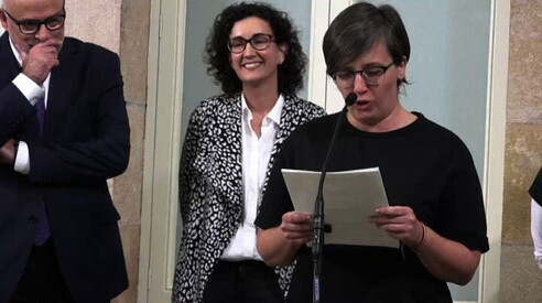 Barcellona (askanews) - Dopo il suo controverso discorso davanti al Parlamento catalano, in cui ha prima dichiarato e poi sospeso l'indipendenza unilaterale della Catalogna dalla Spagna, Carles Puidgemont e il suo vice, Oriol Junqueras, hanno ufficialmente firmato la Carta della dichiarazione d'indipendenza. La deputata del Parlamento catalano, Gabriela Serra ha letto, tra gli applausi, la nuova Costituzione della sedicente "Repubblica Catalana".