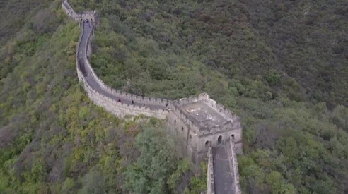 Le immagini riprese dall'alto da un drone mostrano in tutto il suo splendore la sezione Mutianyu, mentre s'inerpica tra la vegetazione nel tratto che attraversa il Distretto di Huairou, 70 km a nord-est di Pechino.