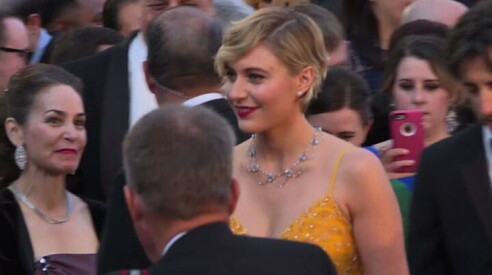 Saoirse Ronan e Greta Gerwig si sono presentate rispettivamente in rosa e in giallo, Helen Mirren ha sfoggiato un elegantissimo abito blu, Sally Hawkins si è presentata con un abito argento scintillante, così come Gal Gadot, mentre Meryl Streep in rosso acceso. In lilla, invece, Salma Hayek, con un vestito tempestato di paillettes, oro metallico per Jennifer Lawrence, ed Emma Stone, sfidando la consuetudine, ha scelto un tailleur con giacca rubino su pantalone nero, fasciato da una cinta fucsia.