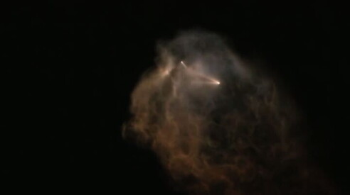A creare questa fantastica scenografia notturna il distacco del primo stadio del razzo Falcon 9 che poi ha fatto ritorno sulla apposita piattaforma d'atterraggio ed è stato il primo rientro effettuato da SpaceX su una base che si trova sulla costa occidentale degli Stati Uniti.