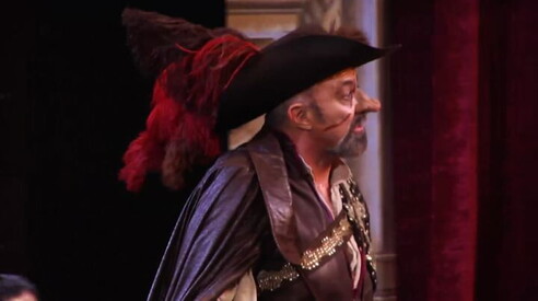 "Ci sono due momenti belli nello spettacolo, uno è quando Cyrano va a trovare nel quinto atto la donna che ha amato, e lui che avrebbe voluto vincere la vita sfidando a duello tutti, viene ucciso alle spalle, tradito alle spalle. E questa è una metafora bellissima, perché la vita ti tradisce, una malattia, è vita che è terribile e la partita non è mai alla pari, si perde sempre alla fine qualcosa. Ed è la stessa frase che dice de Guiche, quando sei nel pieno del fulgore e dell'entusiasmo della tua vita non capisci che in quel momento già qualcosa sta finendo".