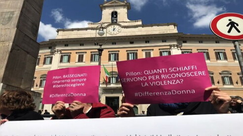 "No al Ddl Pillon", blitz delle femministe davanti Montecitorio