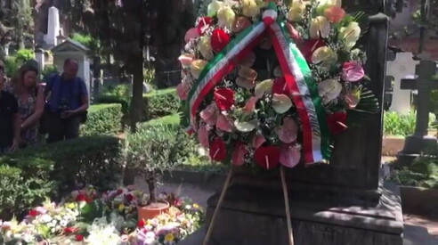 Chi è andato di persona al cimitero di Testaccio non ha assistito a una cerimonia, ma si è trovato davanti la tomba del Maestro ricoperta da un manto di fiori colorati e sovrastata da un'enorme corona di anturio bianchi e rossi.