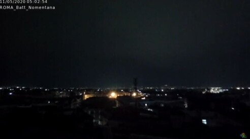 Roma, 11 mag. (askanews) - Una webcam che punta su Roma Batteria Nomentana, dove si trova una stazione meteo della Regione Lazio, ha ripreso il momento del terremoto cha ha colpito questa mattina poco dopo le 5 l'area metropolitana di Roma. Nel video registrato dallo streaming si vede a un certo punto l'onda sismica che scuote i palazzi.