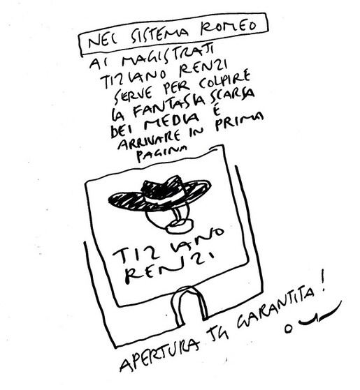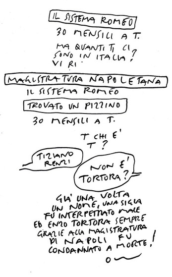 Il sistema Romeo e il signor T. 01 mar 2017 x 1 di 3 Vincino Tiziano Renzi Consip Enzo Tortora Sullo stesso argomento: Il Signor T., Bonifaz. e gli altri eroi della Repubblica dei pizzini A rischio non sono né il governo né Lotti, ma l'immagine di Renzi Di più su questi argomenti: Vincino Tiziano Renzi Consip Enzo Tortora