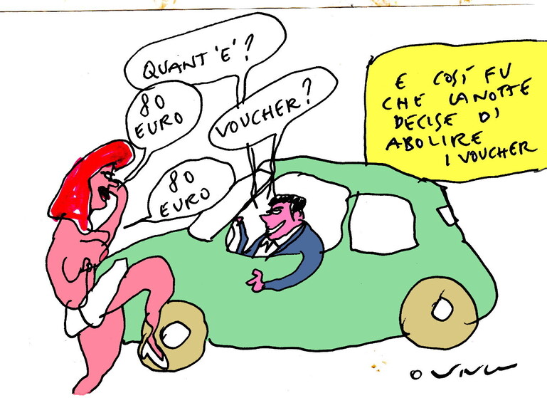 L'abolizione dei voucher e l'epidemia di morbillo visti da Vincino Vincino 20 mar 2017 x 1 di 6 Voucher morbillo Matteo Renzi figli Di più su questi argomenti: Voucher morbillo Matteo Renzi figli