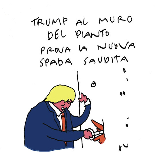 Trump al Muro del Pianto Vincino 22 mag 2017 x 1 di 3 vincino Sullo stesso argomento: Donald e Bibi Trump e Abu Mazen parlano di pace, ma i palestinesi bruciano le foto di Donald Donald Trump è arrivato a Roma Di più su questi argomenti: vincino
