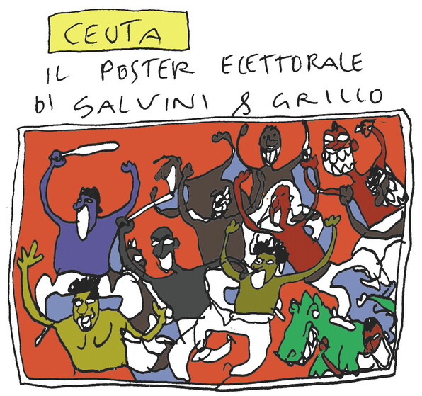 Ceuta, il poster elettorale di Salvini e Grillo Vincino 09 ago 2017 x 1 di 3 vincino Sullo stesso argomento: Il nuovo miracolo del Cav.? Mollare Salvini Di più su questi argomenti: vincino